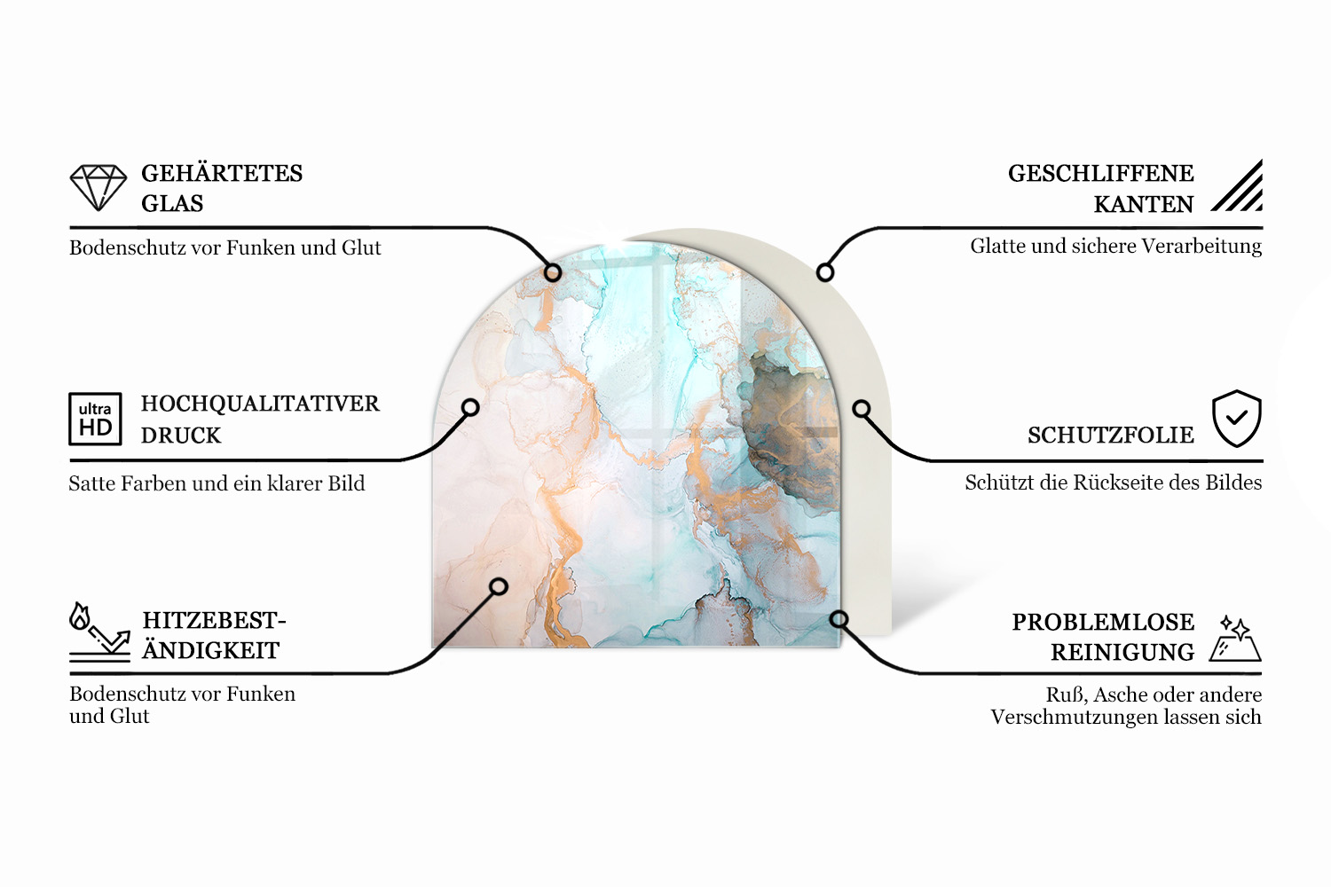 Halbrunde Glasplatte für Kaminofen Blumenmotiv mit Schmetterlingen
